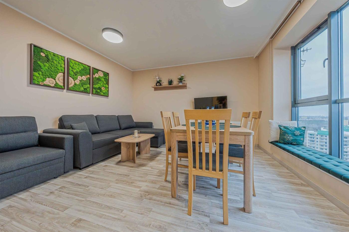 Apartament z 2 sypialniami. Jest to apartament z kuchnią, w której można przygotowywać posiłki i przechowywać żywność. Apartament jest ogrzewany i wyposażony w pralkę oraz telewizor z płaskim ekranem. W tej opcji zakwaterowania do dyspozycji gości są 3 łóżka. Apartament - 5 osobowy. Powierzchnia pokoju ok.: 38 mkw.