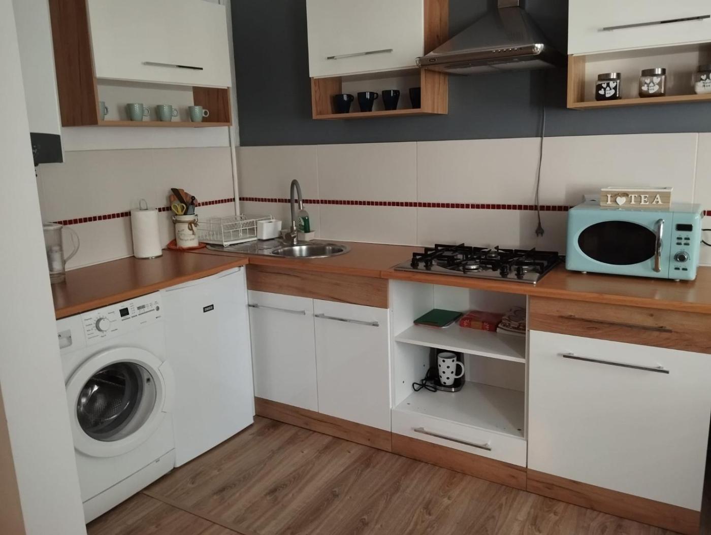 Apartament z 1 sypialnią. Featuring a private entrance, this apartment consists of 1 living room, 1 separate bedroom and 1 bathroom with a walk-in shower and a hairdryer. Guests can make meals in the kitchen that is equipped with a stovetop, a refrigerator, kitchenware and a microwave. The apartment provides a flat-screen TV with cable channels, a washing machine, a tea and coffee maker, a seating area as well as a quiet street view. The unit offers 1 bed. Apartament - 2 osobowy. Powierzchnia pokoju ok.: 36 mkw.