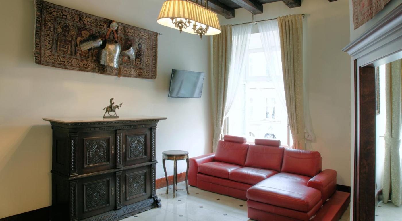 Apartament z 1 sypialnią (2 osoby dorosłe). A Baroque-style spacious, bright and stylish apartment with a kitchenette. Apartament - 2 osobowy. Powierzchnia pokoju ok.: 30 mkw. ;