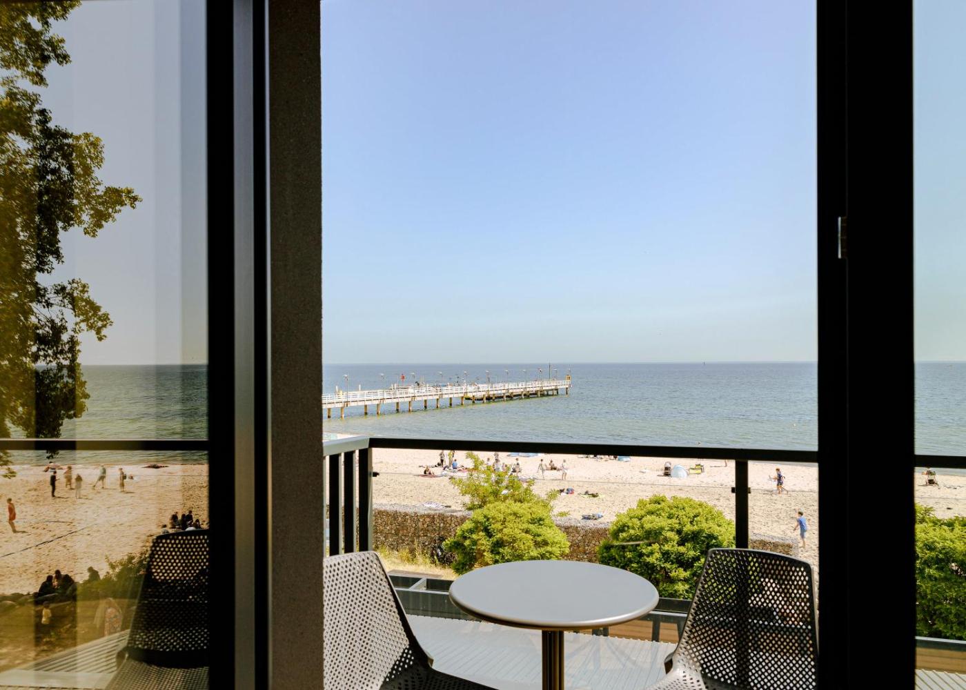 Apartament z 1 sypialnią i balkonem z widokiem na morze. This air-conditioned apartment consists of 1 living room, 1 separate bedroom and 1 bathroom with a shower. Guests can make meals in the kitchen that is equipped with a stovetop, a refrigerator, a dishwasher and kitchenware. Featuring a balcony with sea views, this apartment also provides a coffee machine and a flat-screen TV. The unit offers 3 beds. Apartament - 5 osobowy. Powierzchnia pokoju ok.: 45 mkw. ;