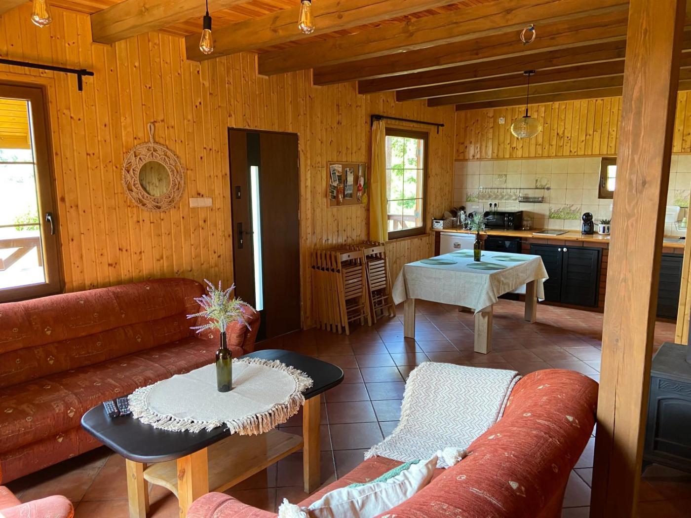 Dom z 3 sypialniami. Guests will have a special experience as the holiday home provides a fireplace. This holiday home consists of 3 bedrooms, kitchenette, a terrace and 1 bathroom with a shower. Guests will find a stovetop, a refrigerator, a dishwasher and kitchenware in the kitchenette. The holiday home also offers a barbecue. This holiday home features a coffee machine, a high chair for children, a flat-screen TV and an outdoor dining area. The unit offers 5 beds. Dom wakacyjny - 9 osobowy. Powierzchnia pokoju ok.: 85 mkw.