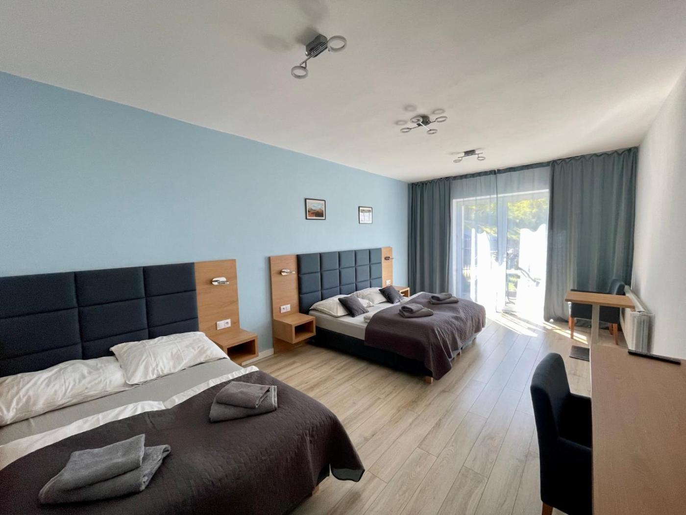 Pokój Trzyosobowy typu Deluxe. The triple room features a wardrobe, heating, a terrace with lake views as well as a private bathroom boasting a shower. The unit has 3 beds. Pokój Trzyosobowy - 5 osobowy. Powierzchnia pokoju ok.: 28 mkw. ;