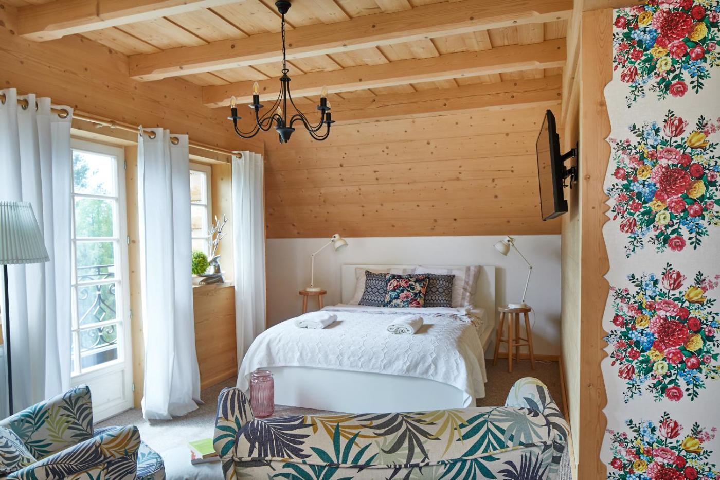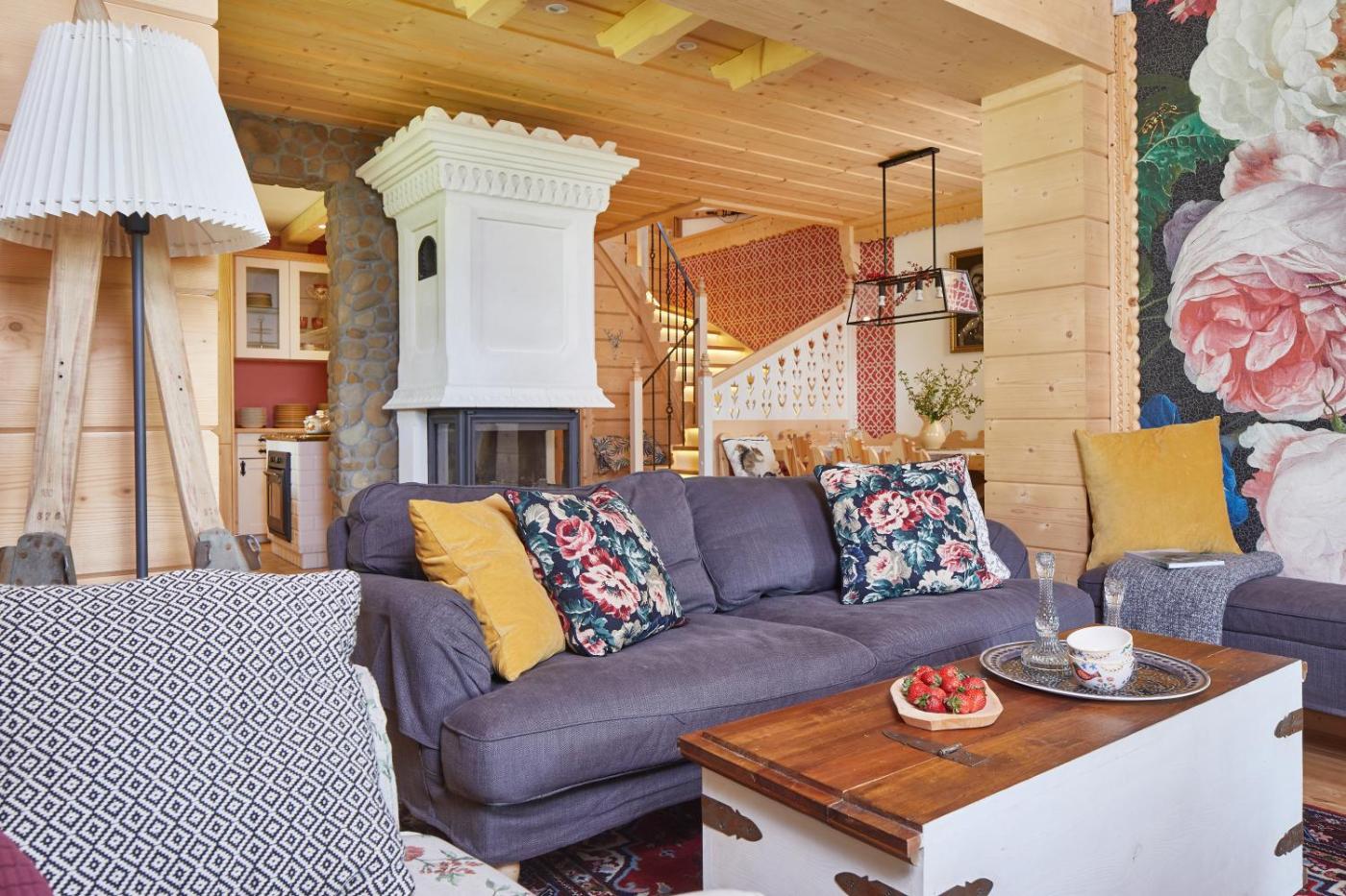 Domek typu Superior z 7 sypialniami. Guests will have a special experience as this chalet features a sauna and a fireplace. This chalet comes with 1 living room, 7 separate bedrooms and 5 bathrooms with a bath and free toiletries. Guests will find a stovetop, a refrigerator, a dishwasher and kitchenware in the well-fitted kitchen. The chalet also includes a barbecue. The unit has a washing machine, garden views, a terrace and winechampagne is available for guests. The unit has 9 beds. Domek - 18 osobowy. Powierzchnia pokoju ok.: 20 mkw.