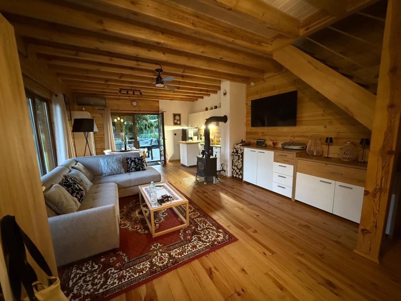 Dom z 2 sypialniami. This holiday home offers a fireplace. Guests will find a stovetop, a refrigerator, a dishwasher and kitchenware in the kitchen. The holiday home also provides guests with a barbecue. The holiday home provides air conditioning, a washing machine, a terrace with garden views as well as a shared bathroom featuring a shower. The unit offers 3 beds. Dom wakacyjny - 4 osobowy. Powierzchnia pokoju ok.: 75 mkw.